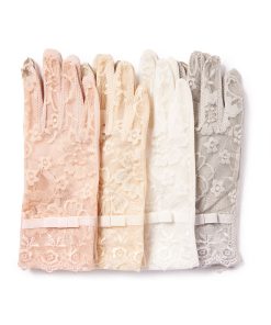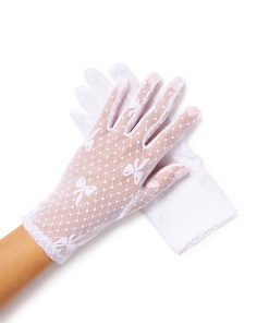 Pippa & Pearl Women’s Polka Dot & Bow Lace Gloves – White | White