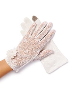 Pippa & Pearl Women’s Lulu White Pearl & Daisy Sheer Summer Gloves | White