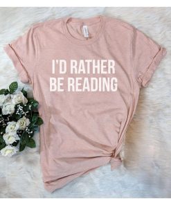 Pippa & Pearl Women’s Apparel “i’d Rather Be Reading” Bookworm Graphic Tee – Pink | Heather Pink