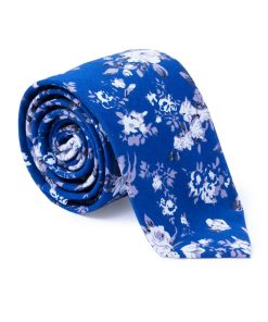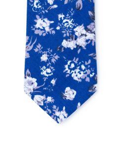 Pippa & Pearl Women’s Alfred Floral Print Neck Tie – Royal Blue & White | Royal Blue & White
