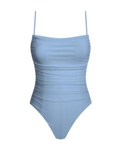 Pippa & Pearl Women’s Apparel Paige Front Ruched One Piece Swimsuit – Light Blue | Light Blue