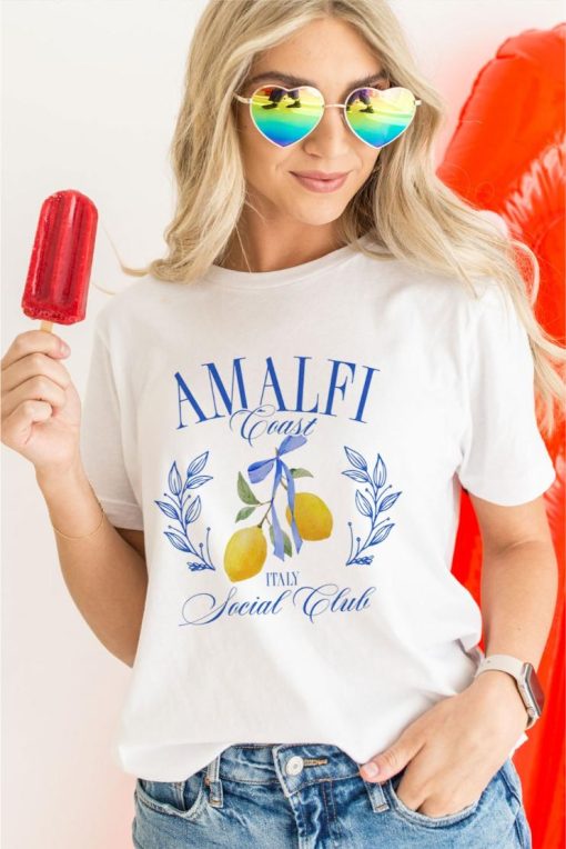 Join the ultimate club with our Amalfi Coast Italy Social Club Graphic Tee! Showcasing the stunning coastline of Italy, this tee is perfect for anyone who loves travel and adventure. Add a touch of fun to your wardrobe and join the club today!