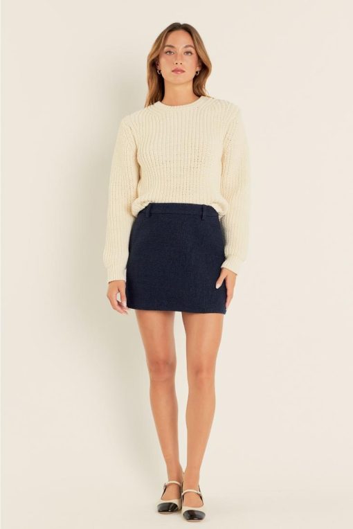 Unleash your inner fashionista with our Navy Tweed Mini Skirt! Made with high-quality tweed fabric, this skirt adds a touch of sophistication to any outfit. Perfect for dressing up or down, the versatile design offers endless styling options. Upgrade your wardrobe today!