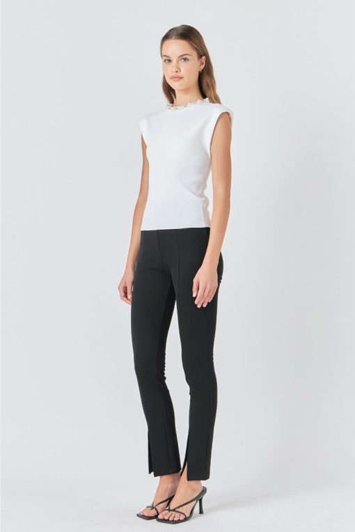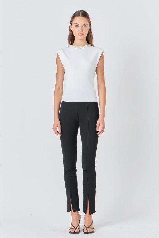 • Pearl and rhinestone embellished neckline