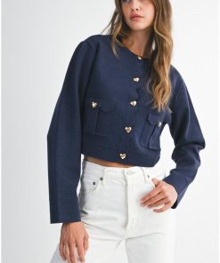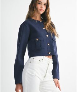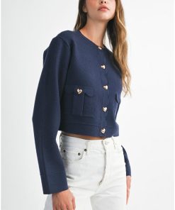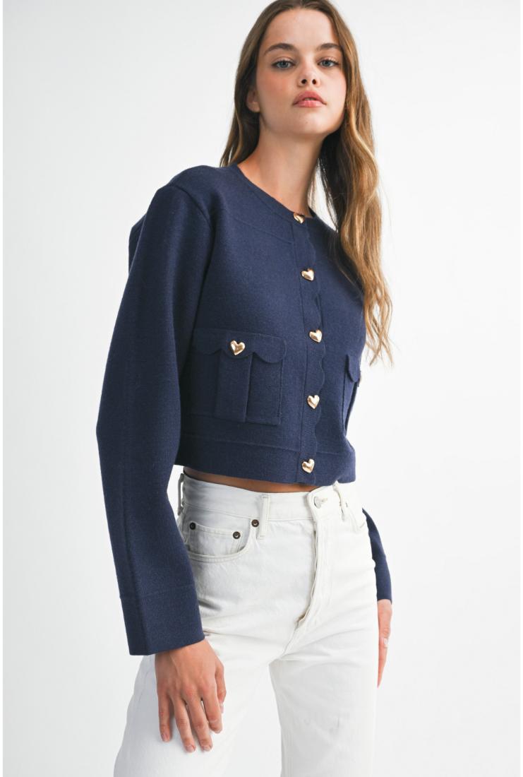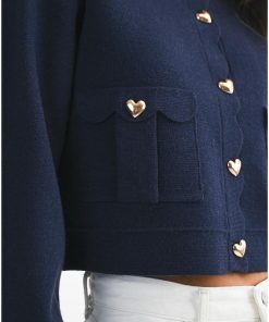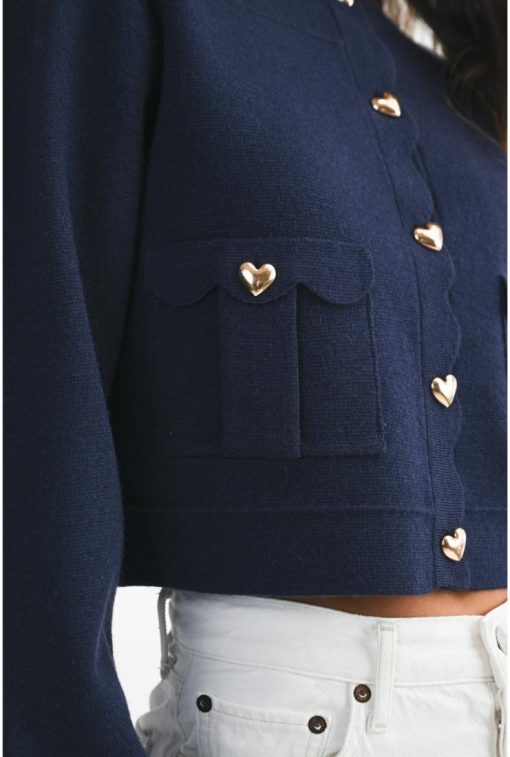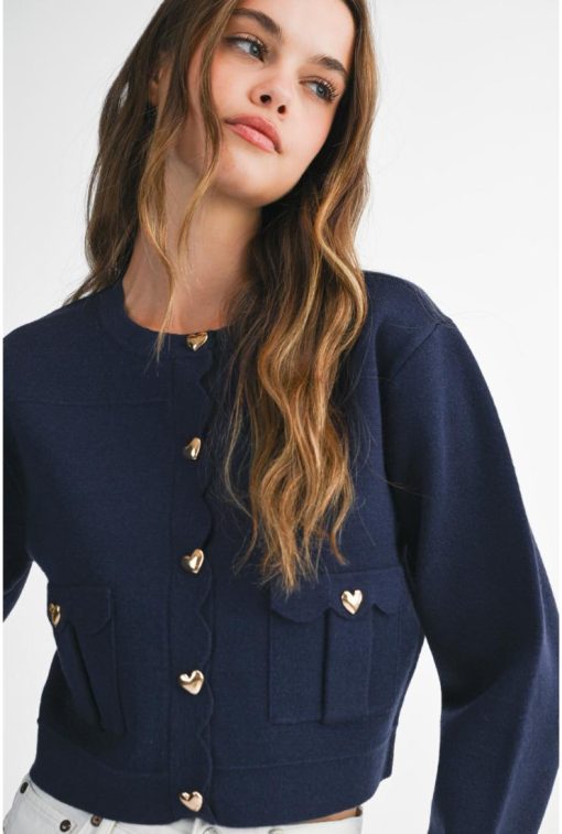 Pippa & Pearl Women’s Apparel Lucia Scalloped Edge Button Up Cardigan – Navy | Navy Blue