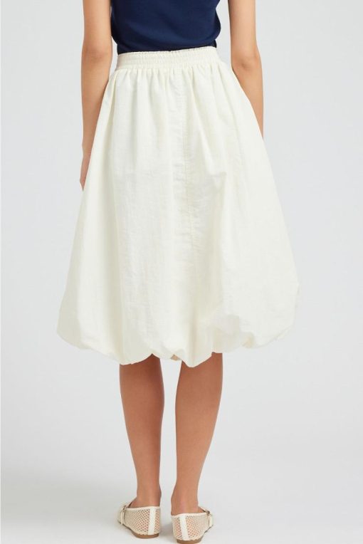 The Ivory Midi Bubble Skirt is the epitome of chic and playful style. Made with a unique midi length and bubble hem, this skirt adds a touch of whimsy to any outfit. Its ivory color makes it a versatile piece for any occasion. Say hello to fashion with a fun twist!