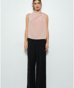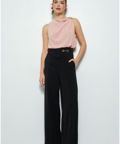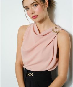 Turn heads with the Ciara Sleeveless Cowl Neck top, featuring a chic gold ring accent that adds a touch of sparkle to your look. Its sleek black fabric drapes effortlessly, making it perfect for day-to-night adventures. Playful yet sophisticated, this top pairs beautifully with your favorite jeans or a flirty skirt for instant style points.