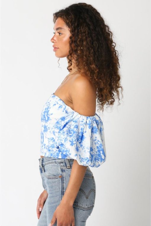 Embrace your feminine side with our Tiffany Floral Print Top in dreamy blue! This flirty off-the-shoulder design features adorable puff sleeves that add just the right amount of drama. Perfect for sunny brunches or evening strolls, this top pairs effortlessly with your favorite jeans or shorts for an instant style upgrade. Get ready for compliments!