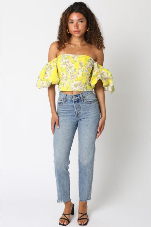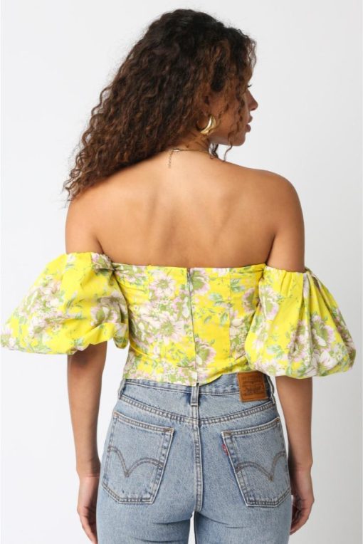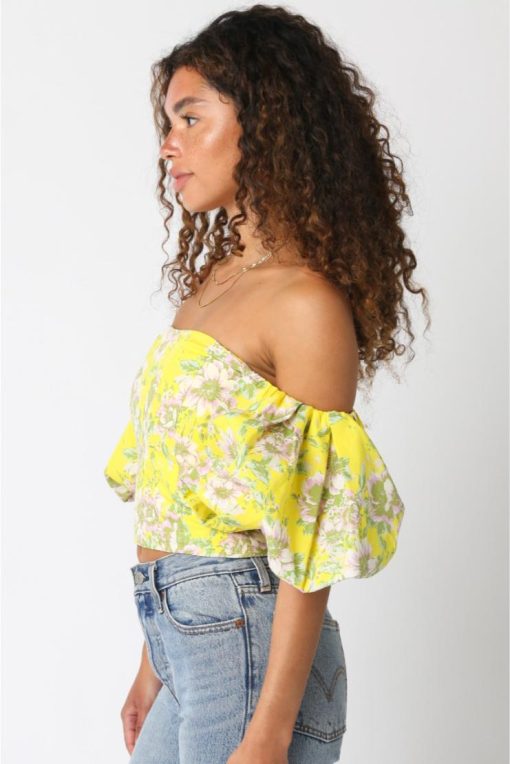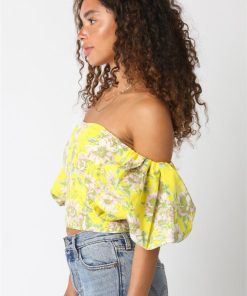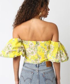Pippa & Pearl Women’s Apparel Tiffany Floral Print Off The Shoulder Puff Sleeve Top – Yellow | Yellow