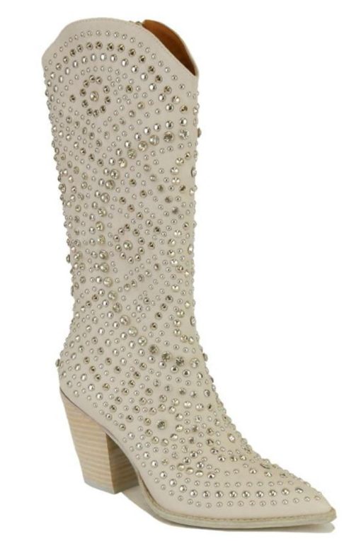 Pippa & Pearl Women’s Daisy Rhinestone & Stud Cowgirl Boots – Taupe | Taupe