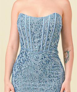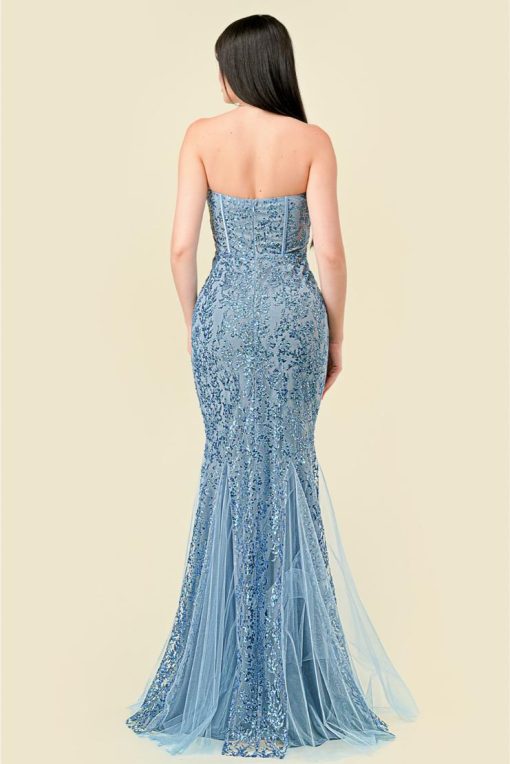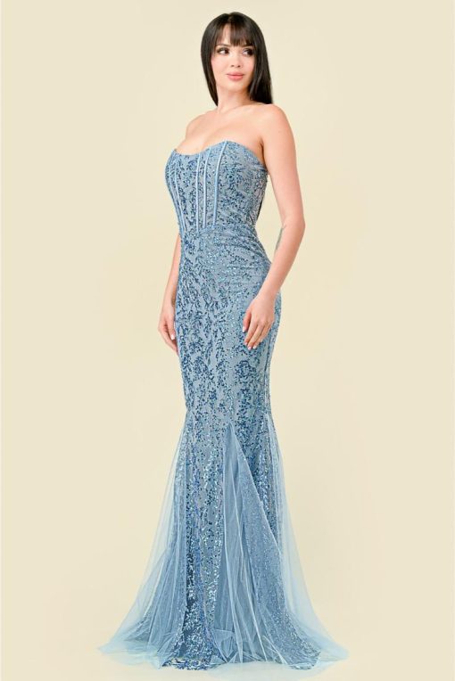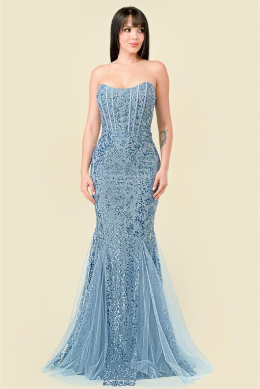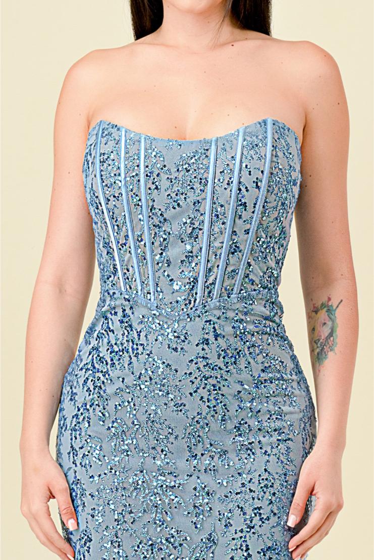 Indulge in luxury with our Briella Dusty Blue Tulle & Sequin Bustier Gown. The intricate tulle and sequin detailing on this dress exudes elegance and sophistication. The bustier design enhances your figure, while the stunning dusty blue color adds a touch of enchantment. Experience an evening of glamour and beauty in our exclusive gown.
