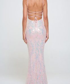 Old Hollywood glamour makes an appearance in this dazzlingly sequined dress updated with sequin pattern design that bares tantalizing peeks of skin.