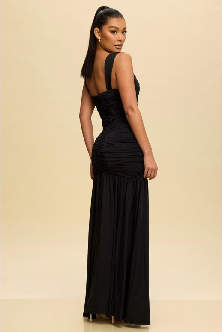 Indulge in effortless elegance with the Delores Ruched Bodycon Maxi Dress. Crafted from luxurious fabric, this dress features a flattering bodycon silhouette and intricate ruched detailing that accentuates your curves. Perfect for any special occasion, this dress exudes sophistication and style.