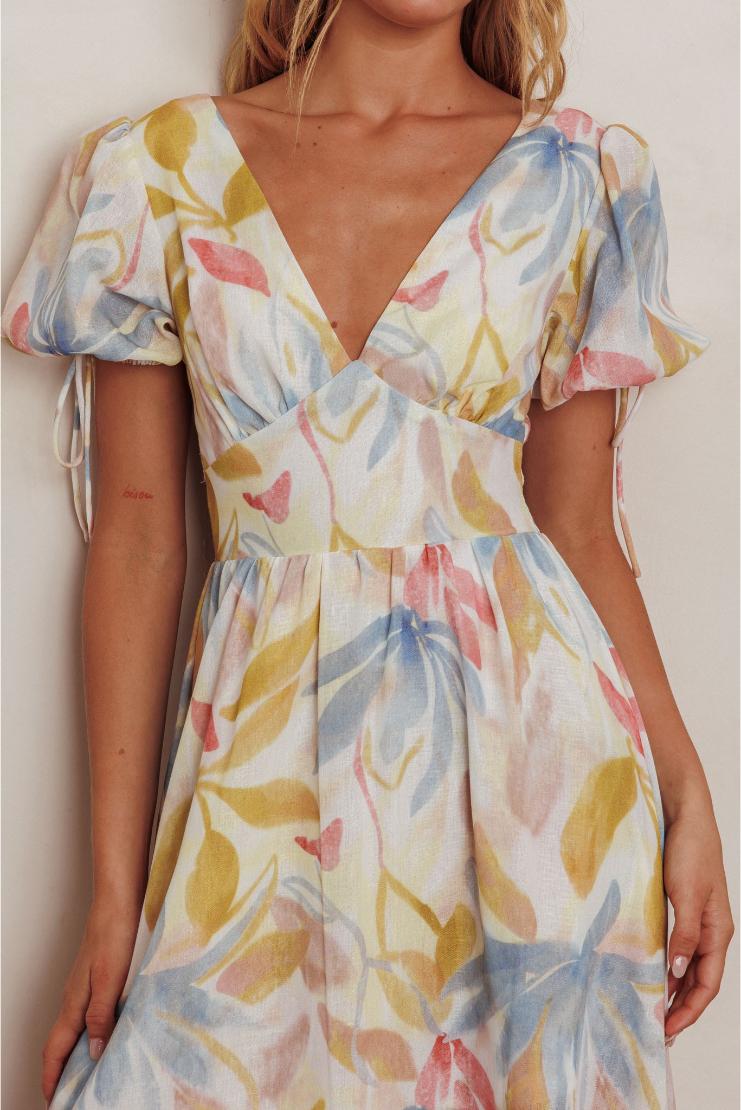 Add a touch of sweet whimsy to your wardrobe with the Melony Maxi Dress. Its playful puff sleeves and delicate floral print will have you twirling through your day with ease. Perfect for any occasion, this dress is sure to bring a smile to your face.