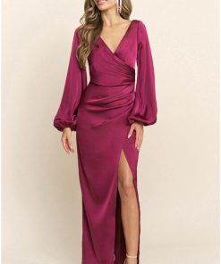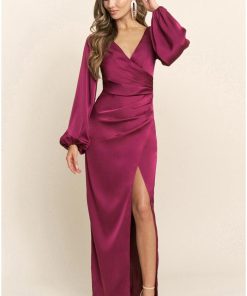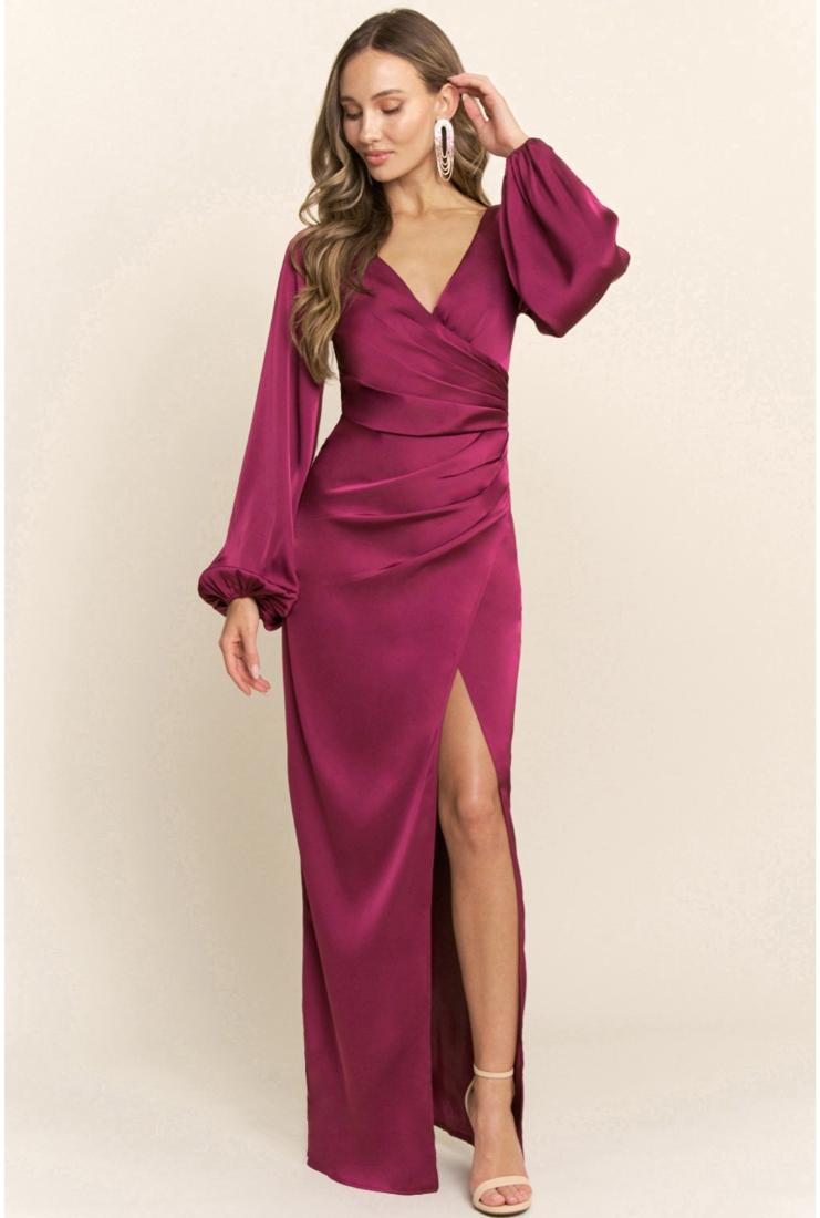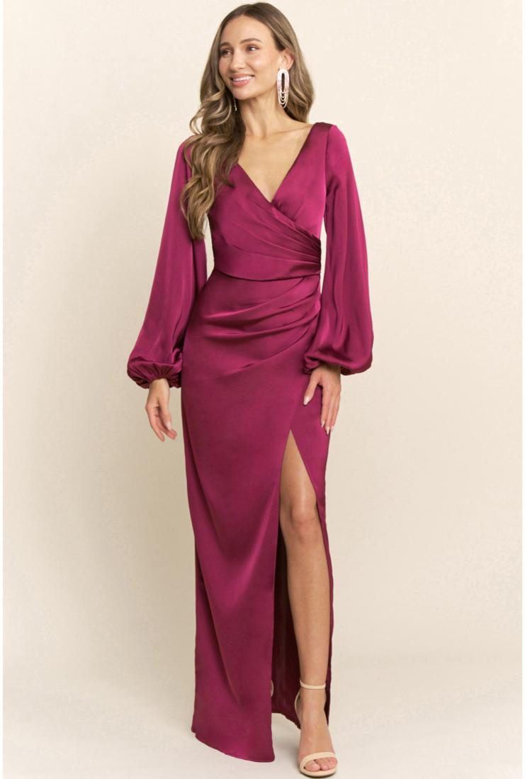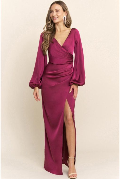 Pippa & Pearl Women’s Dresses Sloane Long Sleeve Satin Maxi Dress – Berry | Berry