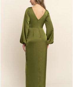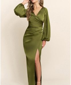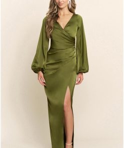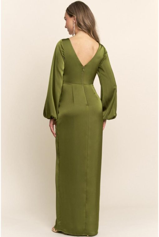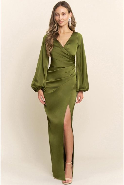 Elevate your evening with the Sloane Long Sleeve Satin Maxi Dress in Olive Green. Its fluid satin fabric drapes elegantly, while the long sleeves offer a refined silhouette, perfect for sophisticated occasions. The rich berry hue adds a touch of timeless allure, ensuring you stand out with effortless grace.
