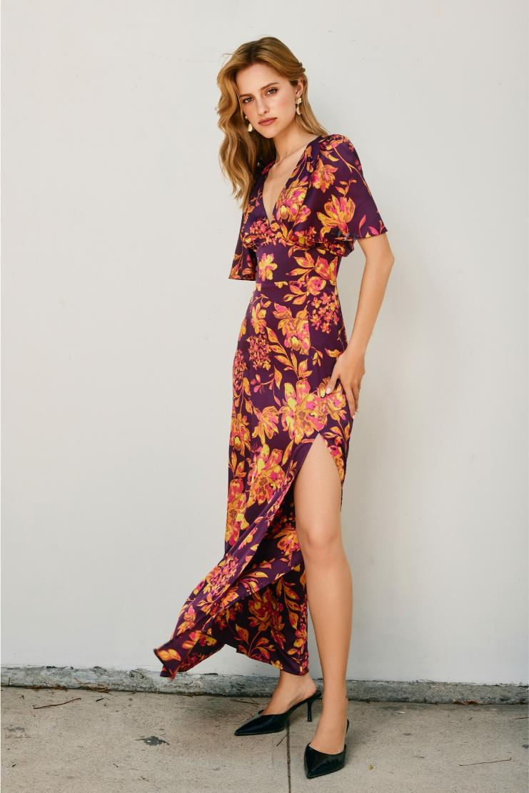 Step into autumn elegance with the Talia Fall Florals Satin Bell Sleeved Maxi Dress. This playful maxi combines silky satin with charming bell sleeves and a vibrant floral print, perfect for twirling through crisp fall days. Lightweight and flowy, it offers comfortable movement while making every occasion feel special. Embrace the season with a dress that’s as lively and graceful as you are!