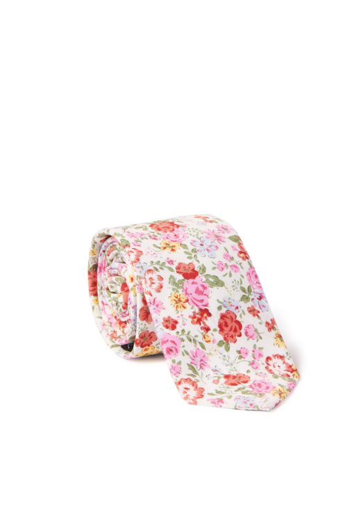 Complete your special occasion with this beautiful floral print necktie. Vibrant floral motifs entwine and cascade down this romantically fun cotton tie.