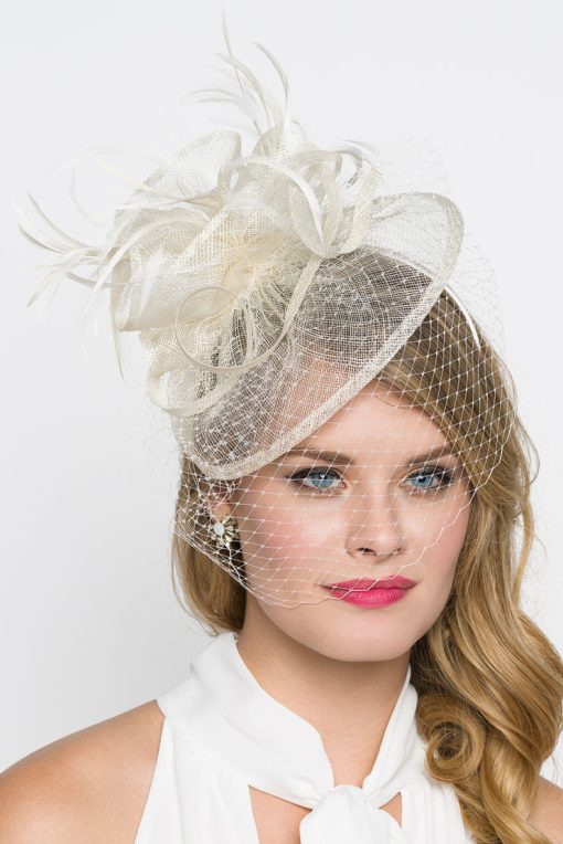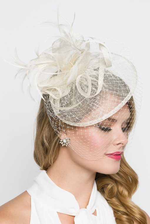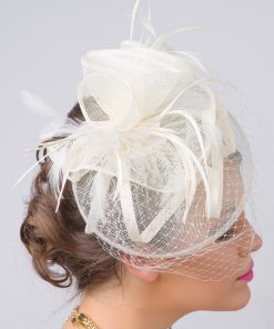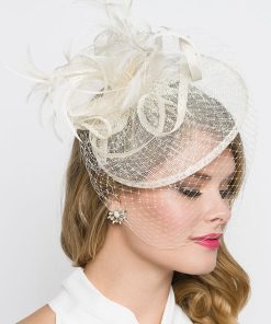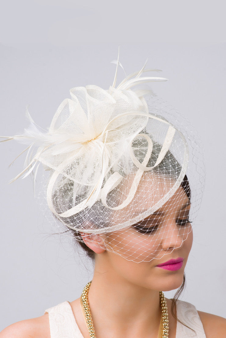 Be the talk of the party in this beautiful fascinator! The round base is embellished with soft french netting, ribbon loops that bounce around the mesh centerpiece and topped off with soft fluffy feathers. Base comes attached to a headband and comfortably fits any adult head size.