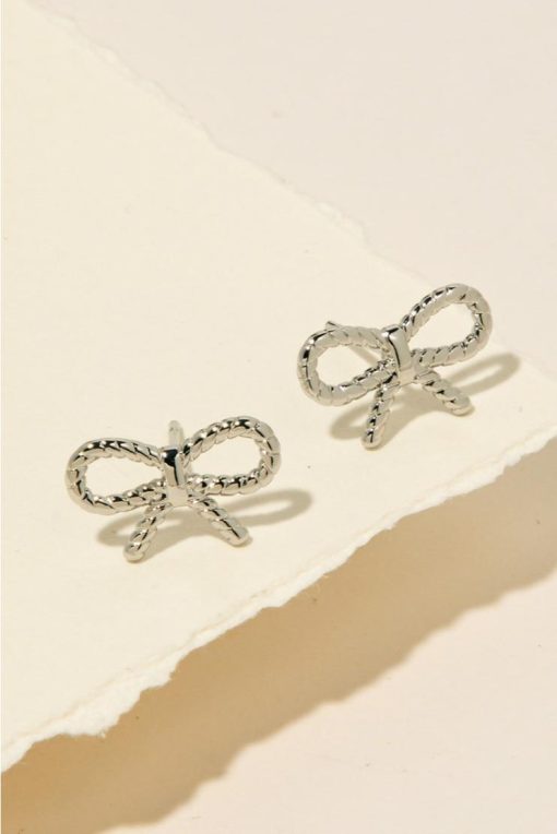 Add a touch of whimsy with these Rope Ribbon Bow Stud Earrings in silver. The playful design will make a statement wherever you go. Perfect for adding a fun touch to your everyday style.