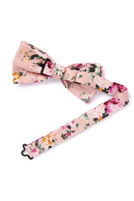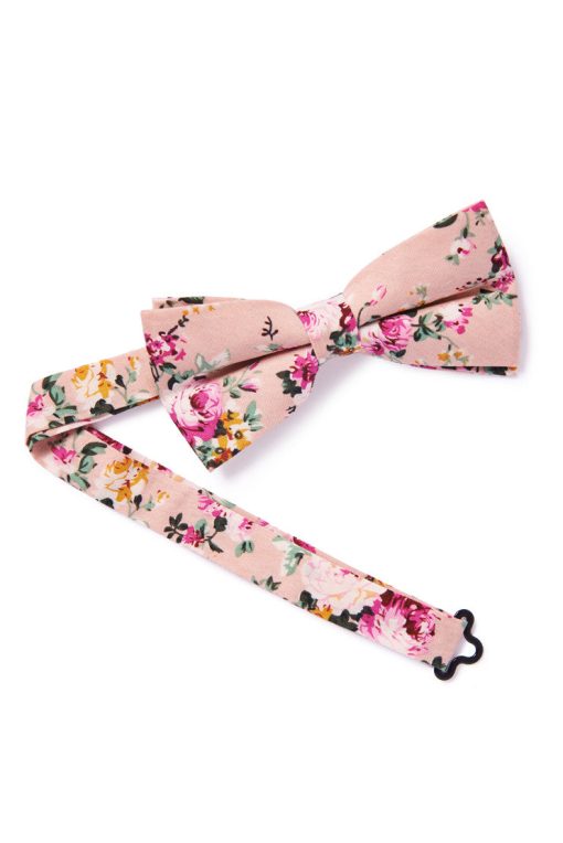 Pretty bright florals add spring time vibes to a dapper little bow tie.